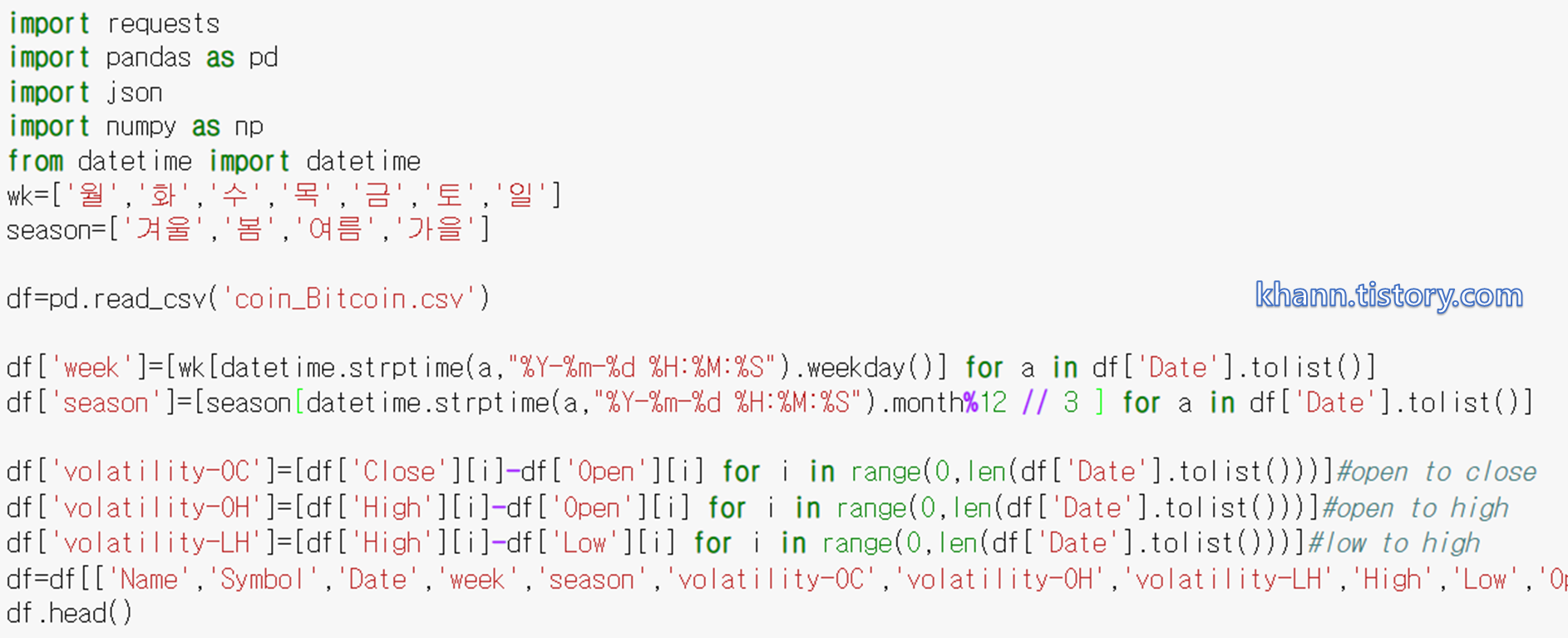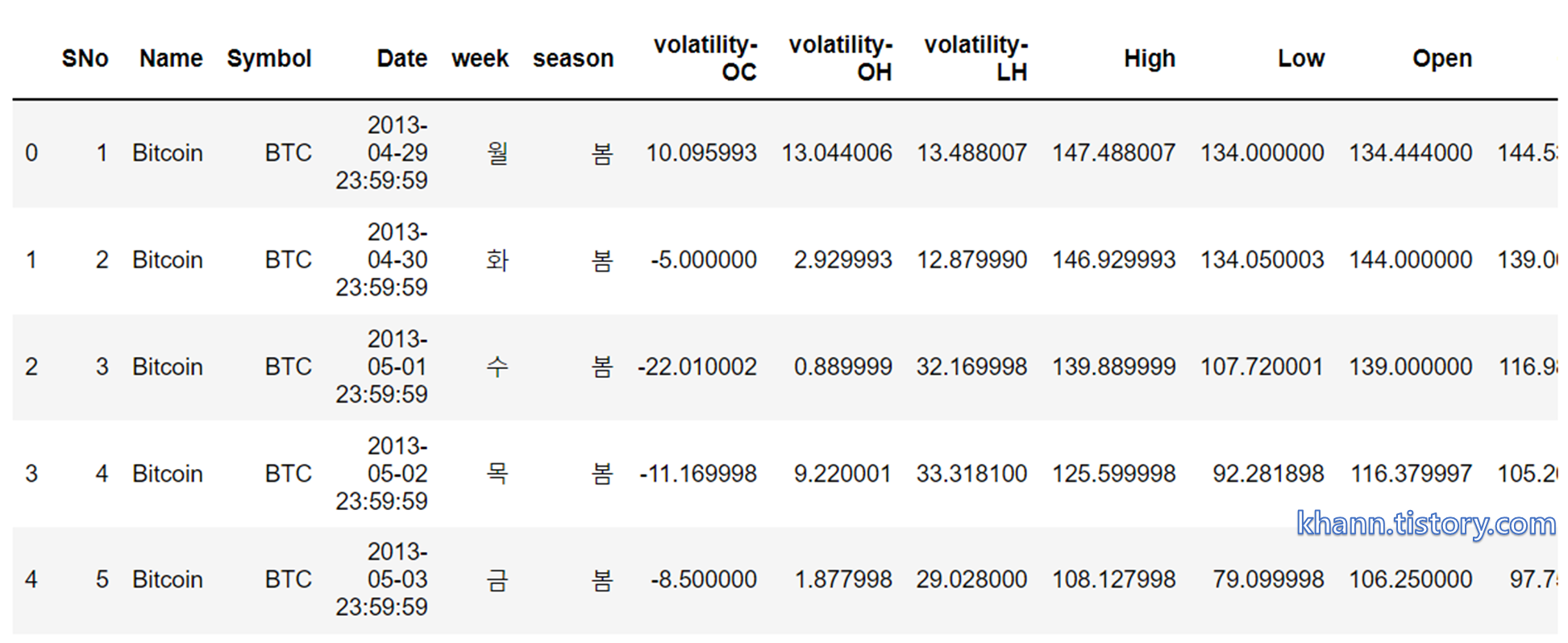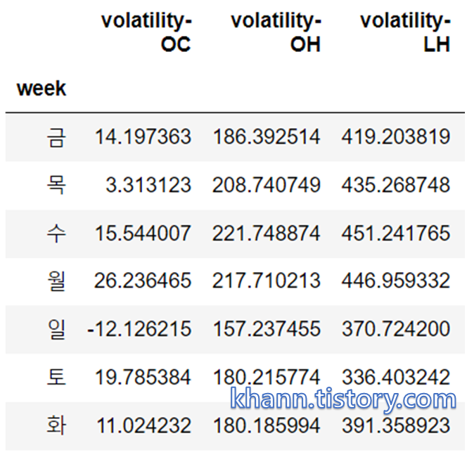 violatility-LH(당일 최고가 - 당일 최저가)컬럼을 추가했다.