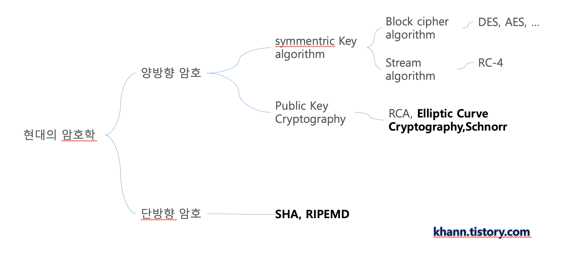 현대의 암호학은 먼저 양방향이냐 단방향이냐로 나뉜다.