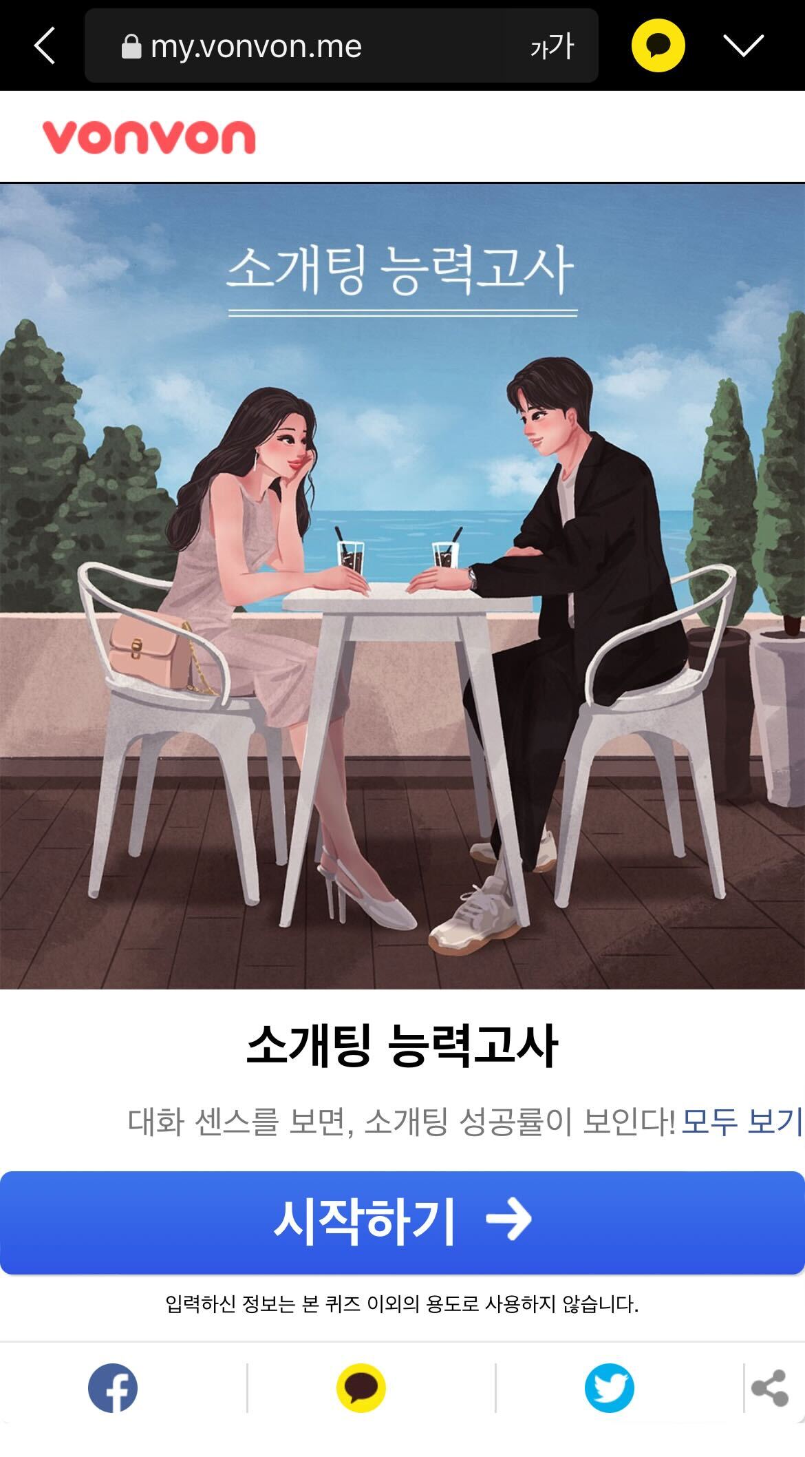 카카오톡으로 공유되는 간단한 심심풀이 테스트가 있다. 최근에 카톡으로 하나의 링크가 공유됐다.