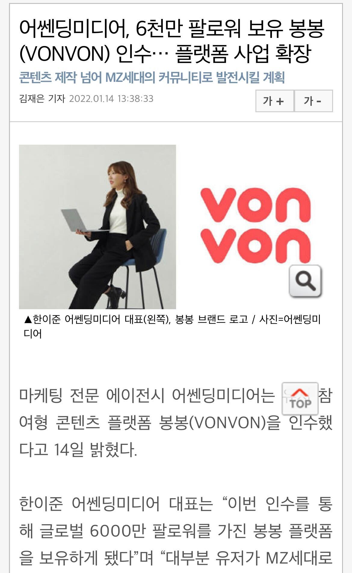 아하. (주)시나몬에서 어쏀딩미디어에게 vonvon을 매각한 것 같다.