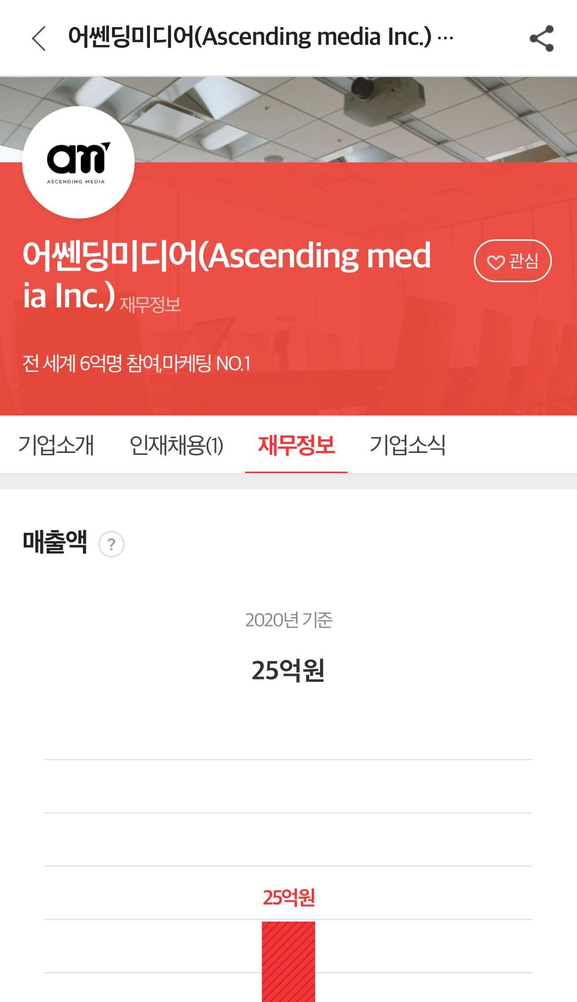 현 사원수 약 25명에 2019년 매출 25억.