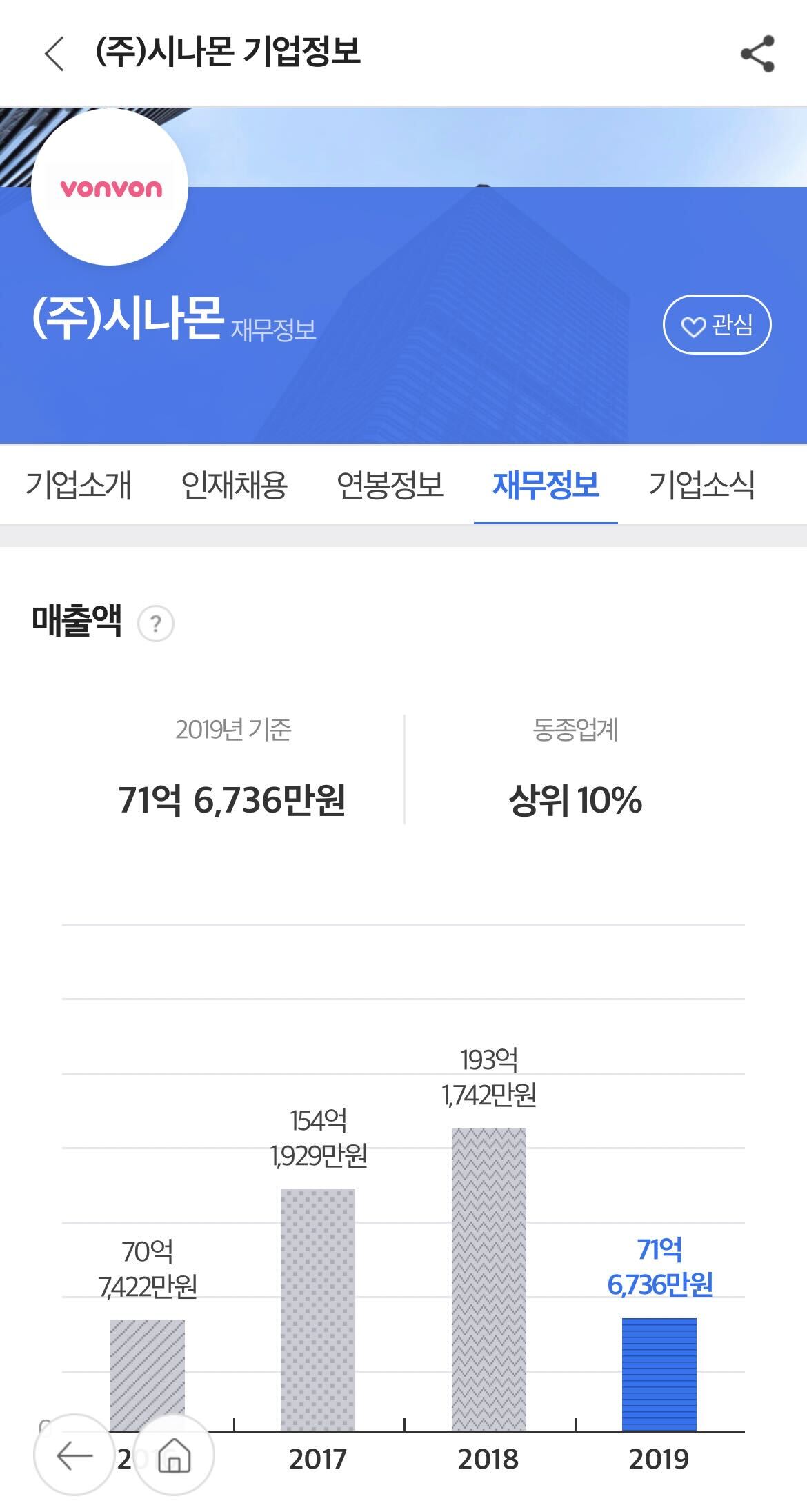 이 회사의 매출을 확인해봤다.