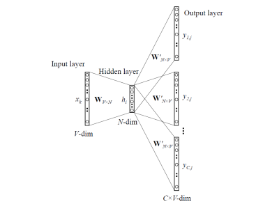 Input layer : ["겨울보다", "여름이"] → Hidden layer(가중치:w) → Output layer : ["따뜻한"] (One-hot-encoding)