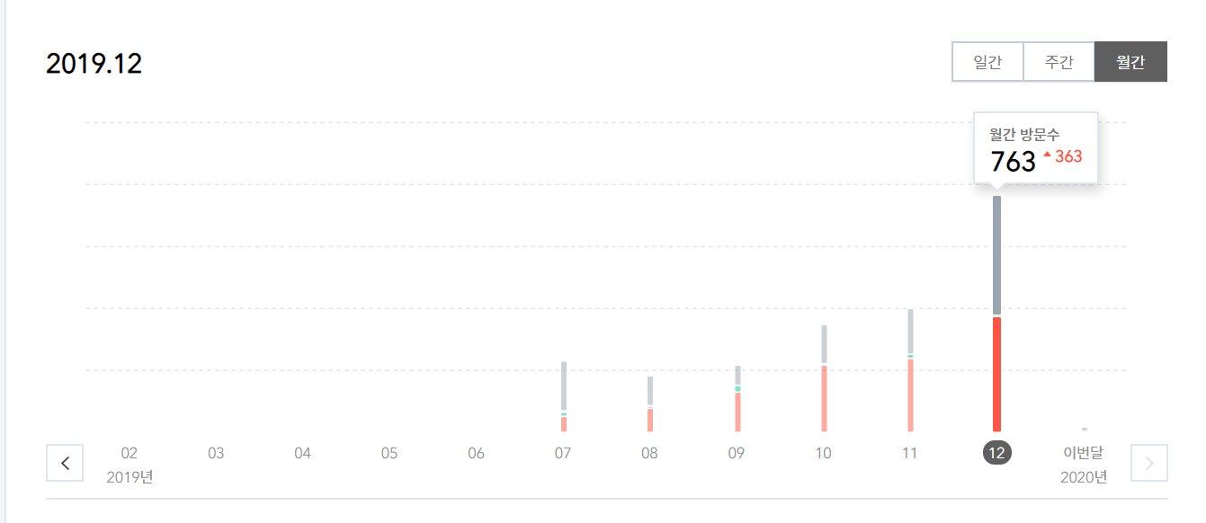 방문자 통계도 살펴봤다. 7월부터 12월까지 작지만 꾸준히 우상향 그래프가 나왔다.