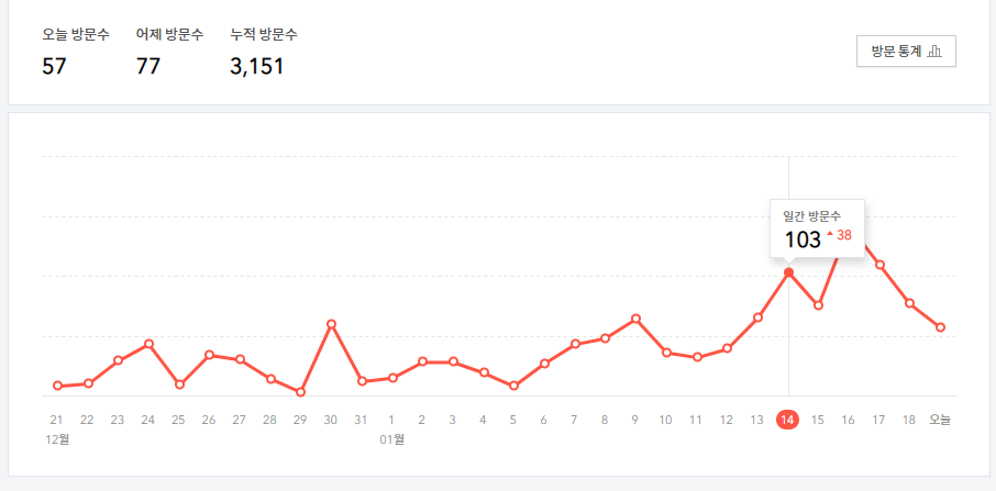 방문자 수가 우상향하는 그래프를 보면서 조금씩 힘이 납니다.
