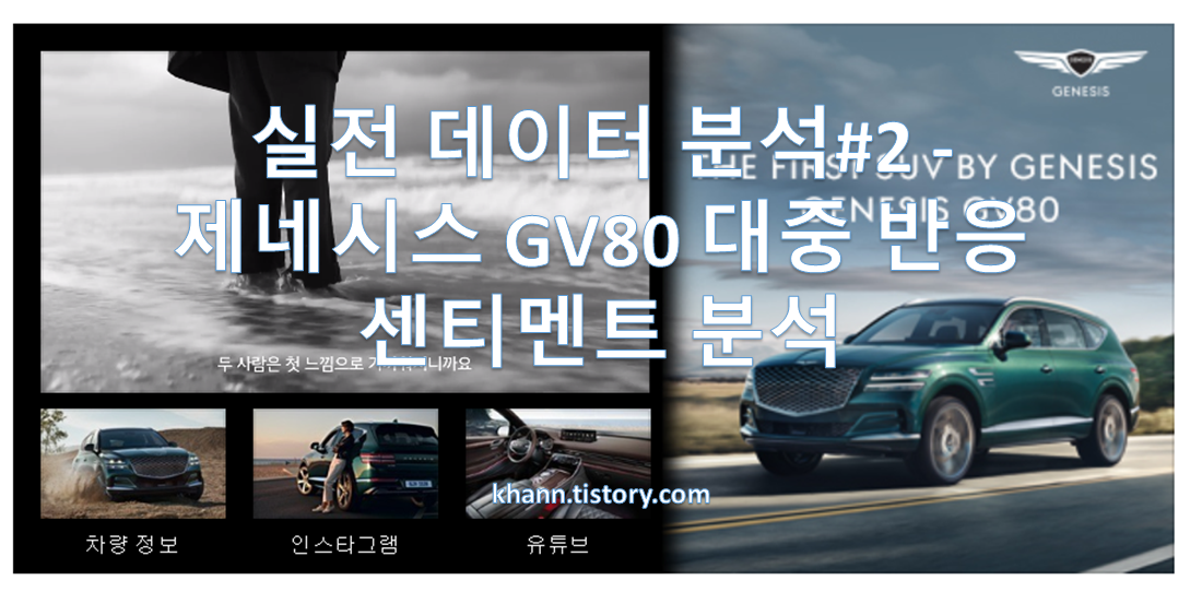 그래서 저는 이 제네시스 GV80에 대한 대중들의 반응이 어떤지 궁금했습니다. 시멘틱 분석을 데이터 수집, 데이터 분석, 시각화 총 3편까지로 나눠서 포스팅할 예정입니다.