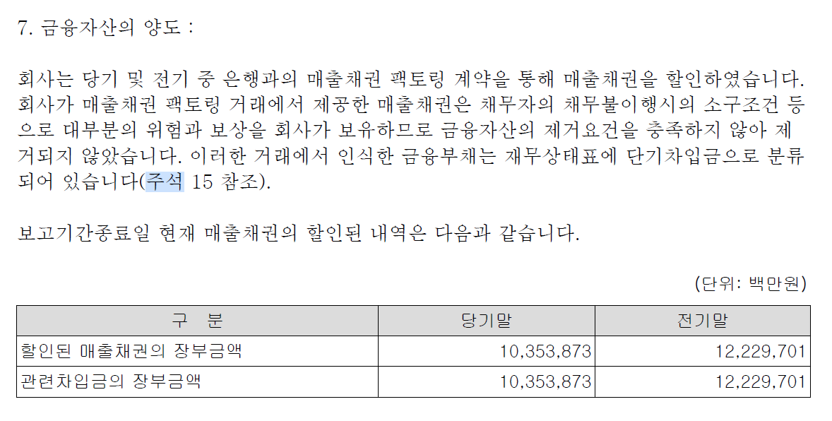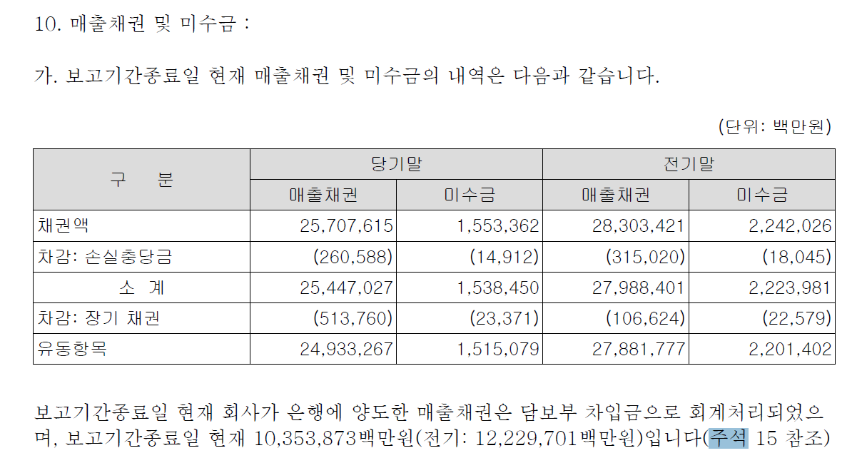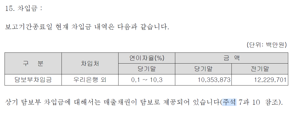 주석15에는 담보는 매출채권이 제공되었다고 나와있습니다.