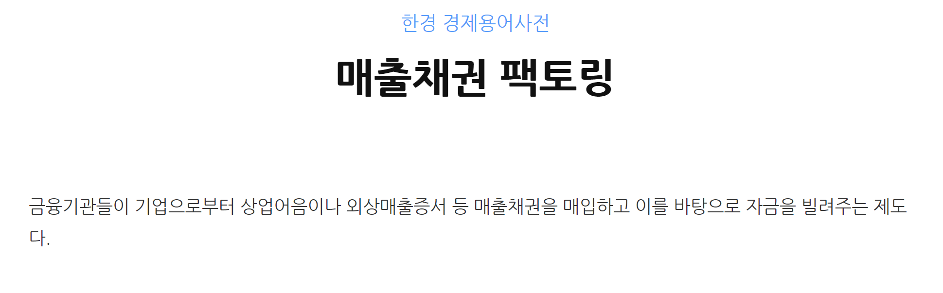 '매출채권 팩토링 계약'이라는 용어가 나오는데 확인해 보니 매출 채권을 매입하고 자금을 빌려주는 제도라고 합니다. (매출채권을 담보로 돈을 빌렸으니 이게 매출채권 팩토링이네요)