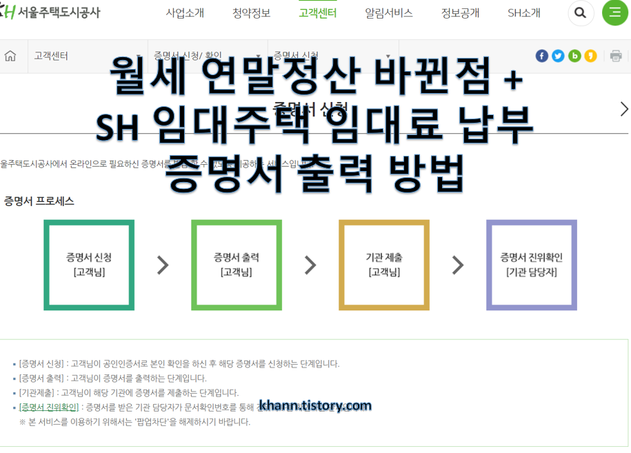 3. SH주택 임차 : SH홈페이지에서 임대료 납부 증명서 출력