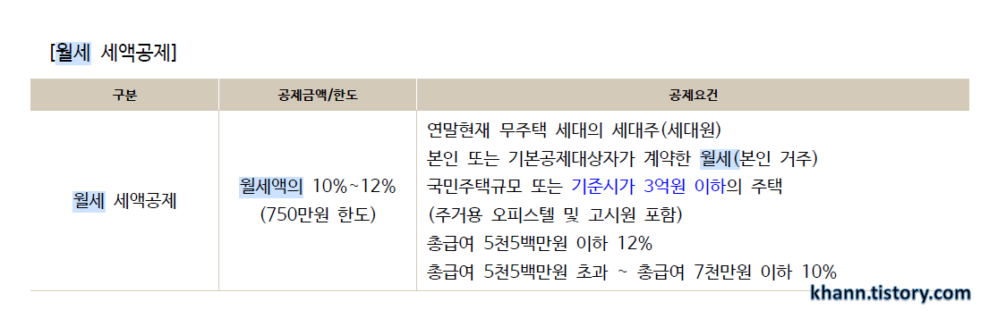 공제금액은 월세액의 10%~12% (750만원 한도)