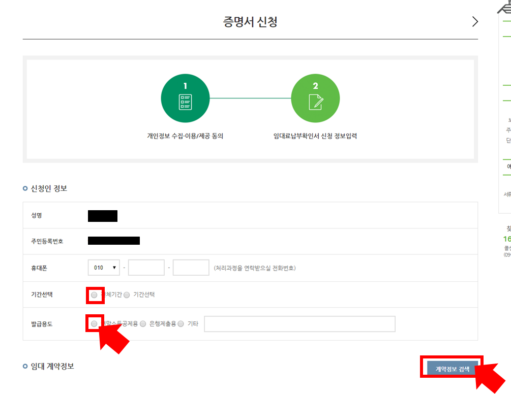 2. LH주택 임차 : LH홈페이지에서 임대료 납부 증명서 출력