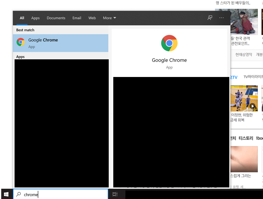 윈도우 + chrome + 엔터 (보통 ch까지만 타이핑해도 됨)
