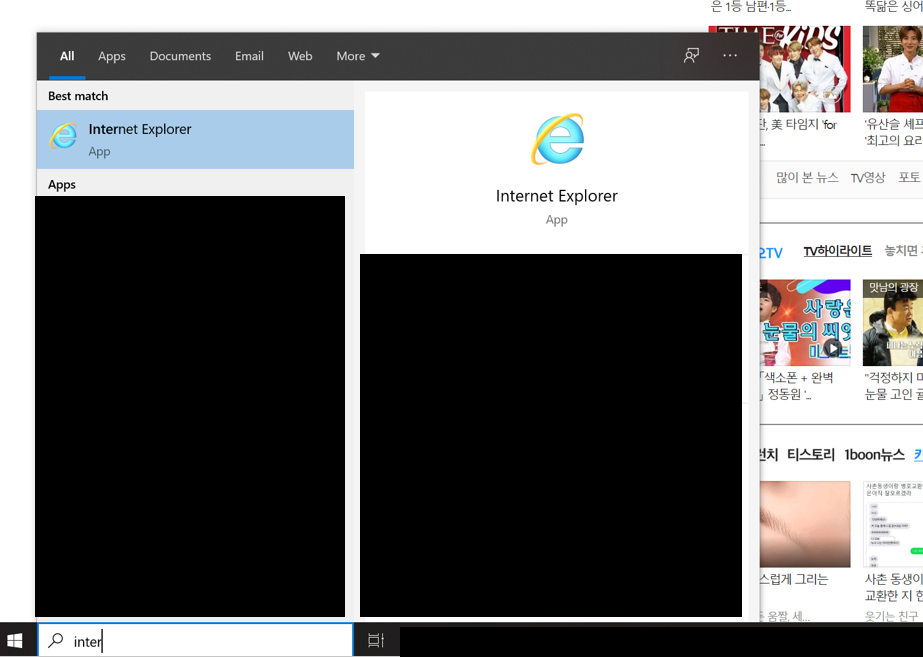 윈도우 + internet + 엔터 (보통 inter까지만 타이핑해도 됨)