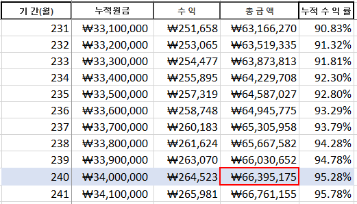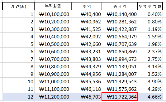 -> 보시면 위와 같이 똑같이 월 10만원씩 납입함에도 불구하고