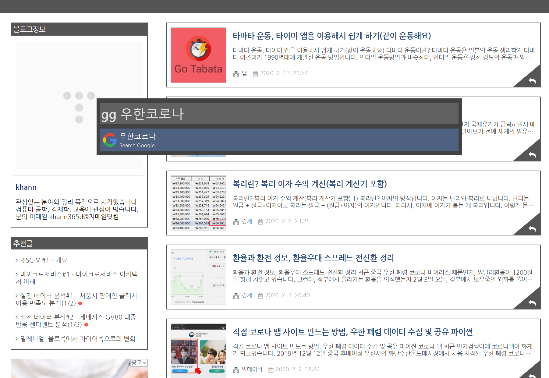 바로 이런 상태에서 엔터를 누르면 구글에서 "우한코로나"를 검색해서 보여줍니다.