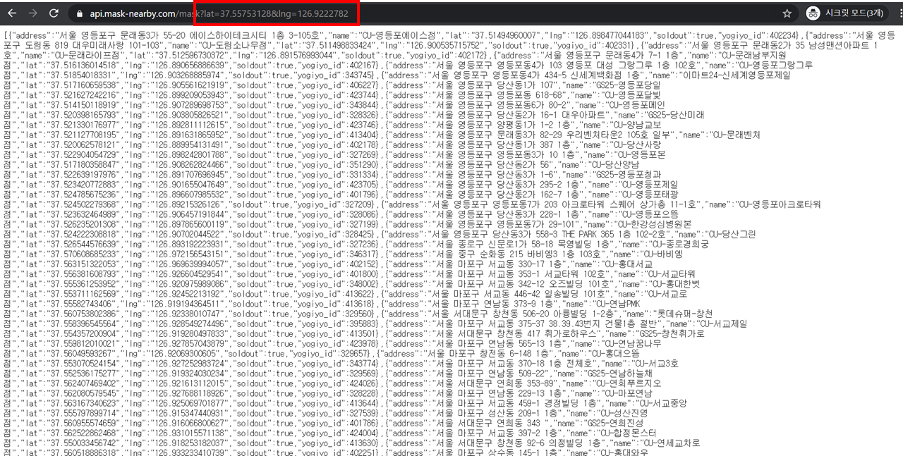 https://api.mask-nearby.com/mask?lat=37.55753128&lng=126.9222782