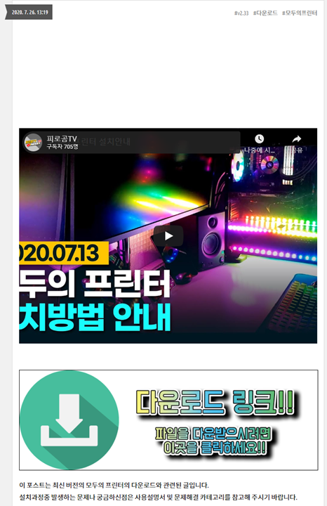 이 포스트는 최신 버전의 모두의 프린터의 다운로드와 관련된 글입니다. 설치과정중 발생하는 문제나 궁금하신점은 사용설명서 및 문제해결 카테고리를 참고해 주시기 바랍니다.